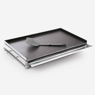 893620840Plancha de aluminio con tratamiento antiadherente insertada en un bastidor de acero inoxidable. Ideal para cocciones light, se puede colocar directamente sobre la parrilla para cocinar a fuego vivo.