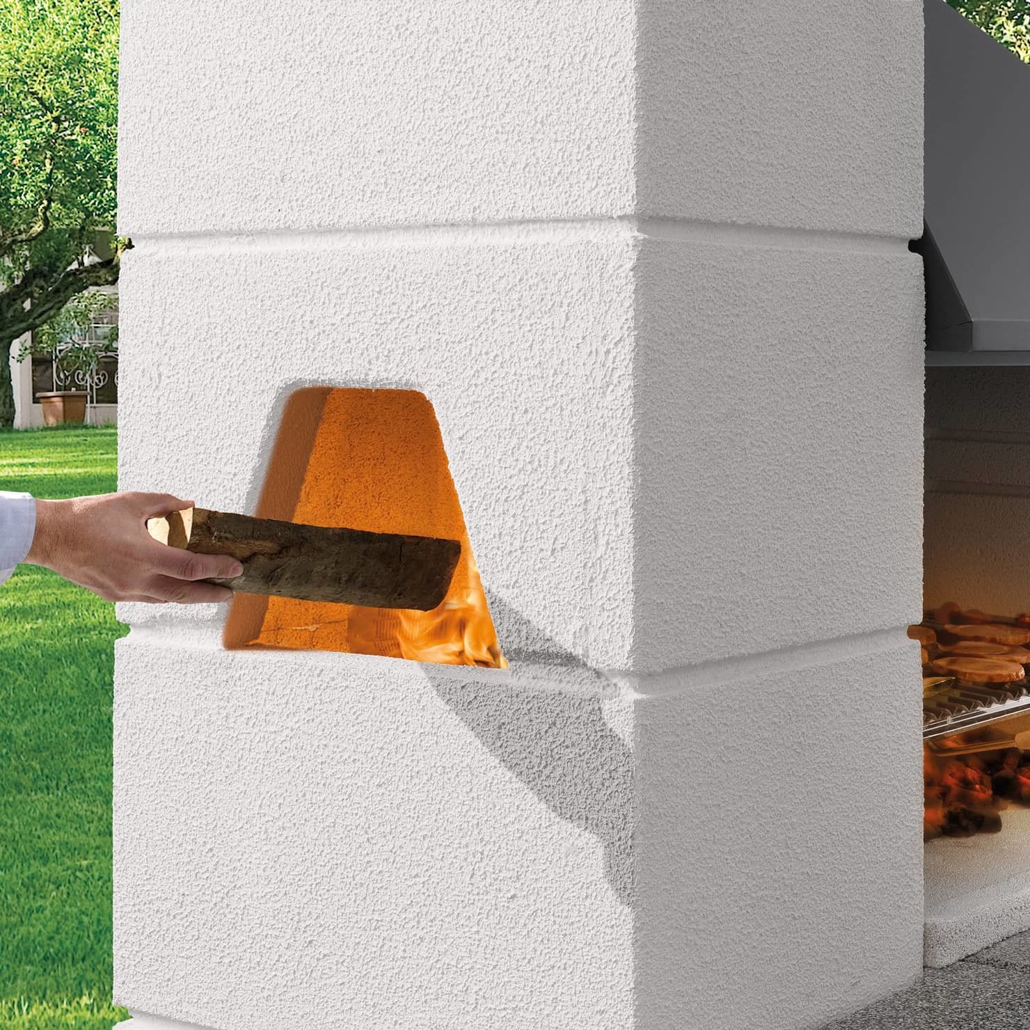 - Brasero reforzado por doble pared en material refractario para una mayor resistencia al fuego intenso de leña incluso con uso frecuente