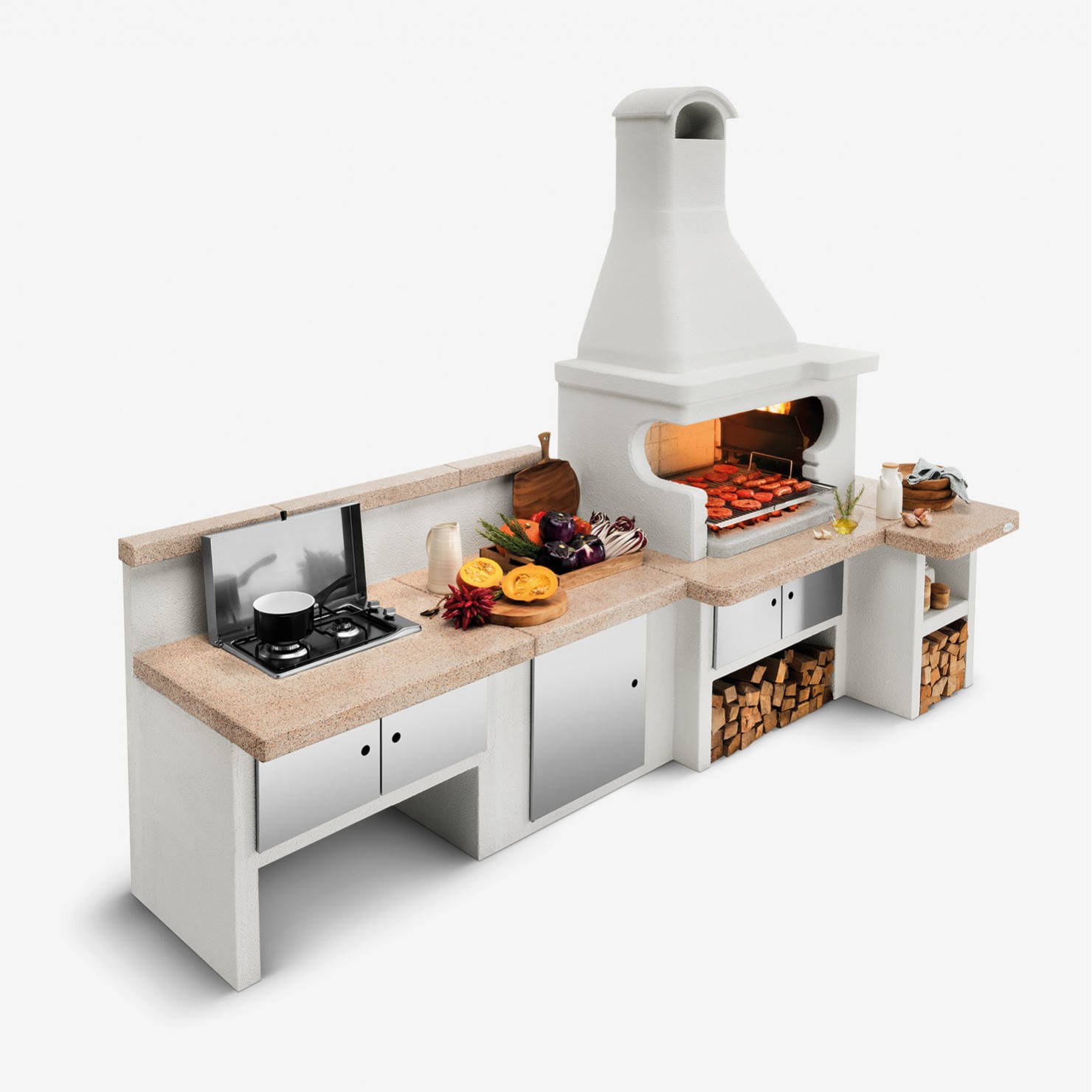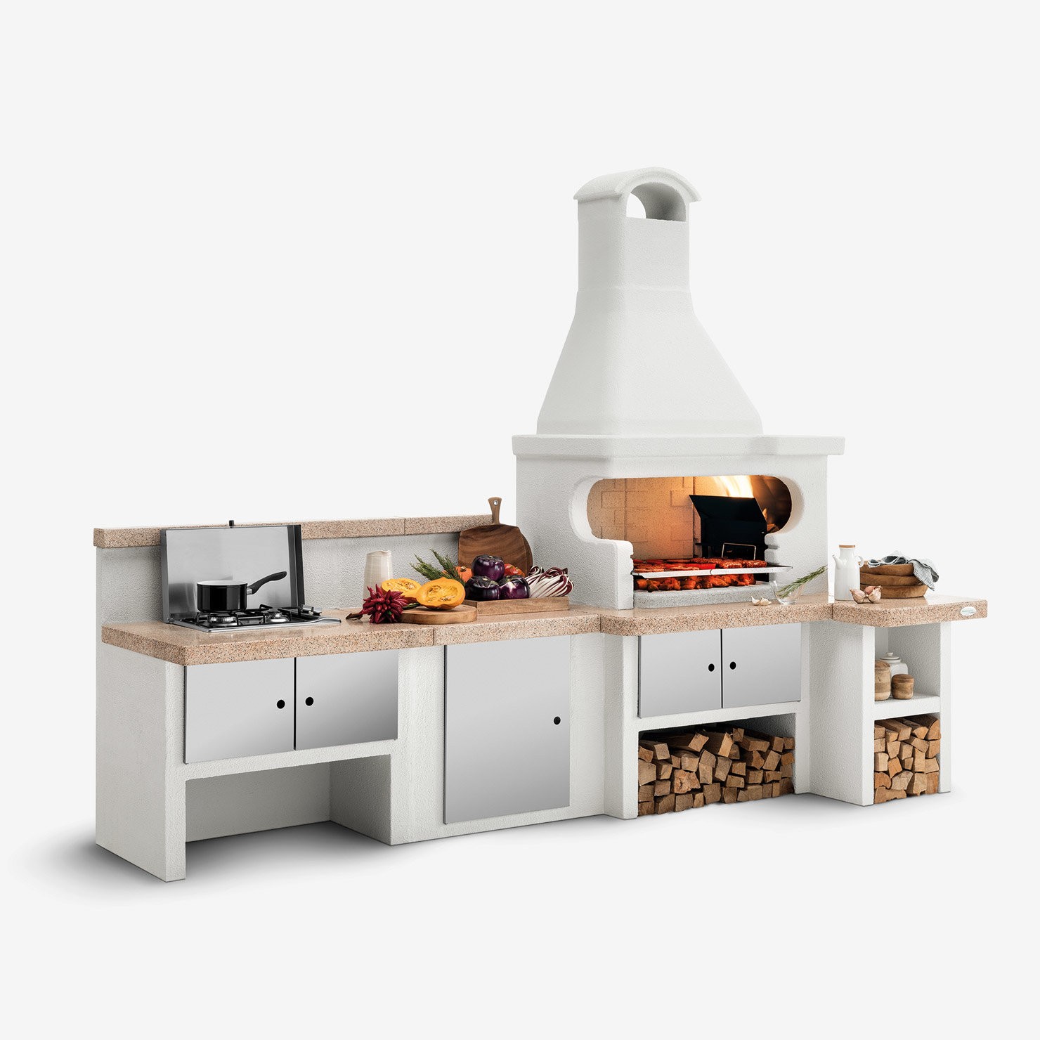 803005810Pequeñas dimensiones, ergonomía, practicidad y parrilla extra grande, todo esto se puede tener en un solo modelo: la barbacoa de jardín Tropea. El hogar con brasero lateral agiliza las tareas de cocción y carga de leña y permite el aprovechamiento completo de la zona de parrilla. La parrilla grande permite cocinar grandes trozos de carne y pescado.