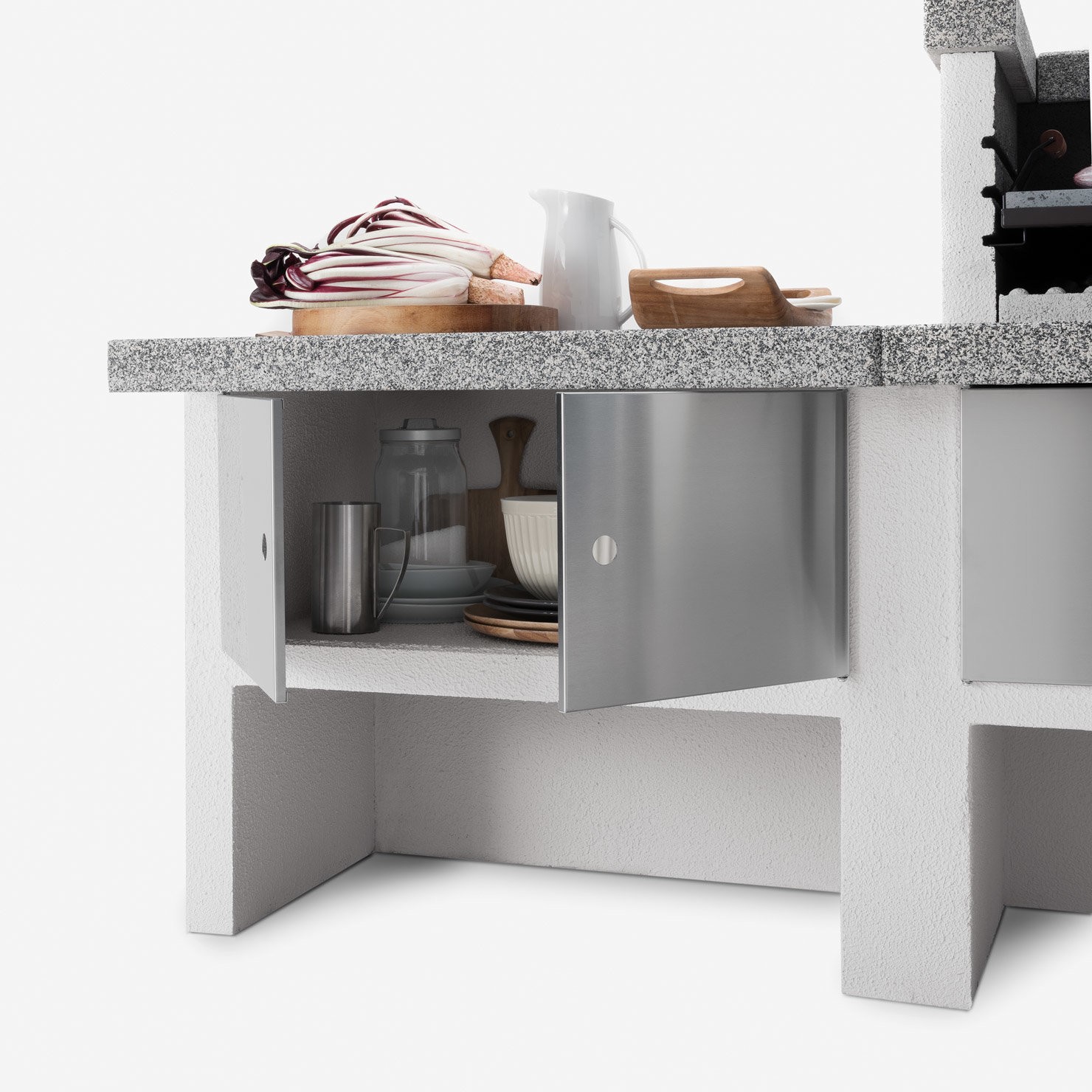 803004810El módulo encimera está equipado con una trasera y un práctico estante. Se puede cerrar con las puertas específicas (opcionales) para convertirlo en una despensa o donde guardar los utensilios.